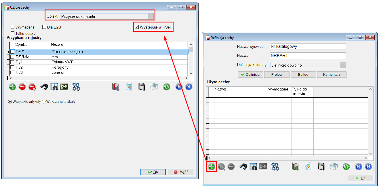 Dodatkowo, aby dana cecha została przeniesiona z dokumentu do pliku XML, konieczne jest zaznaczenie przy niej opcji Występuje w KSeF. Tylko cechy oznaczone w ten sposób zostaną uwzględnione podczas generowania pliku XML.