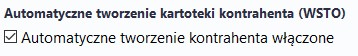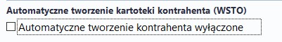 Dodano checkbox: Automatyczne tworzenie kartoteki kontrahenta (WSTO). Domyślnie opcja nie jest włączona.