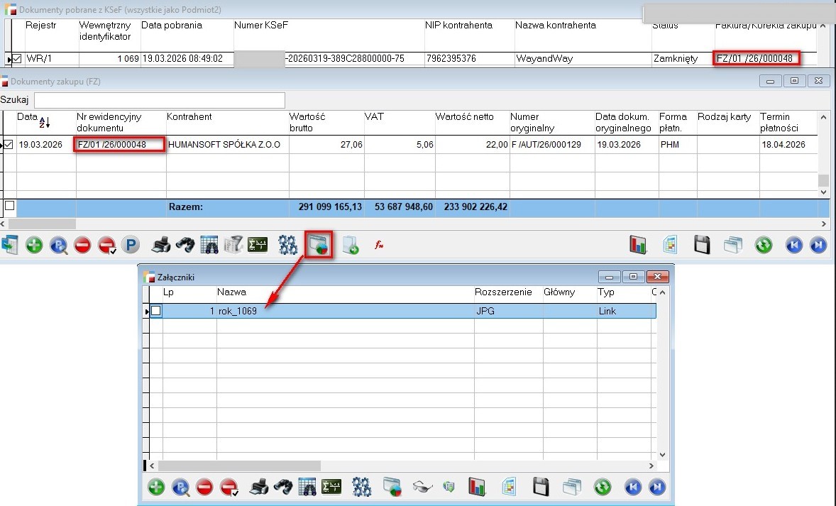 Poprawiono usterkę polegającą na niewłaściwym przypinaniu rejestru dokumentu Faktury zakupu FZ do pobranego dokumentu Wstępnej rejestracji zakupów WR. Sytuacja miała miejsce w przypadku zdefiniowania rejestru WR ze wskazaniem domyślnego rejestru FZ, jednak podczas pobierania faktur, podpowiadał się błędny rejestr faktur zakupu.