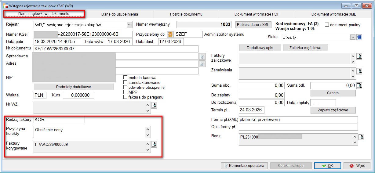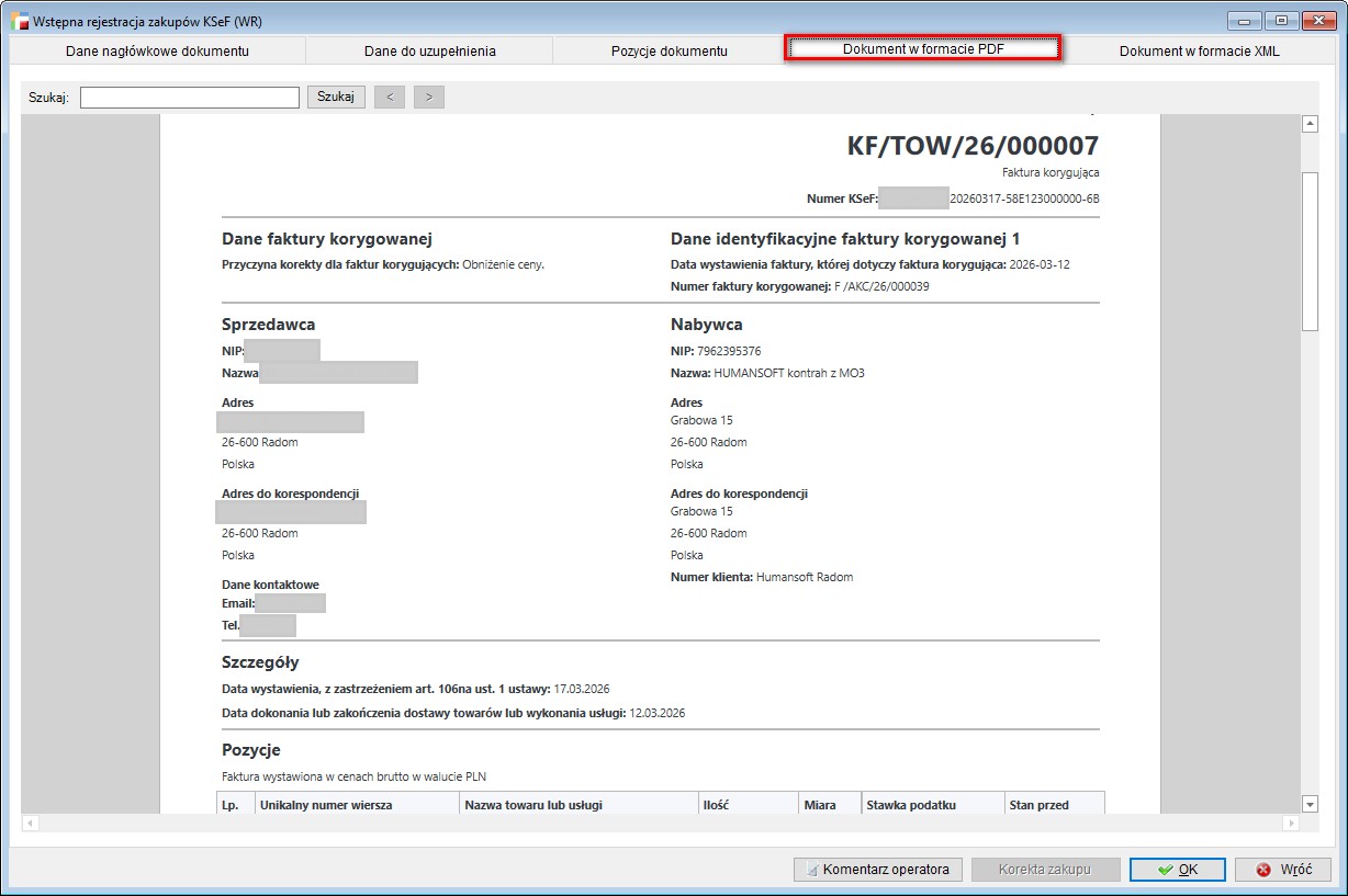 Poprawiono usterkę polegającą na braku możliwości oznaczenia dokumentu KF rabatu potransakcyjnego do KSEF znacznikami BFK, DI, OFF lub numerem i datą KSeF.