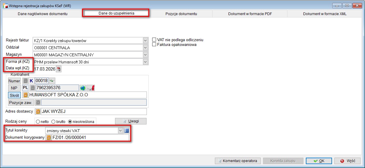 Poprawiono usterkę polegającą na braku uzupełnienia stawki podatku dla pozycji przed korektą. Miało to miejsce dla korekt do dokumentu nieistniejącego.
