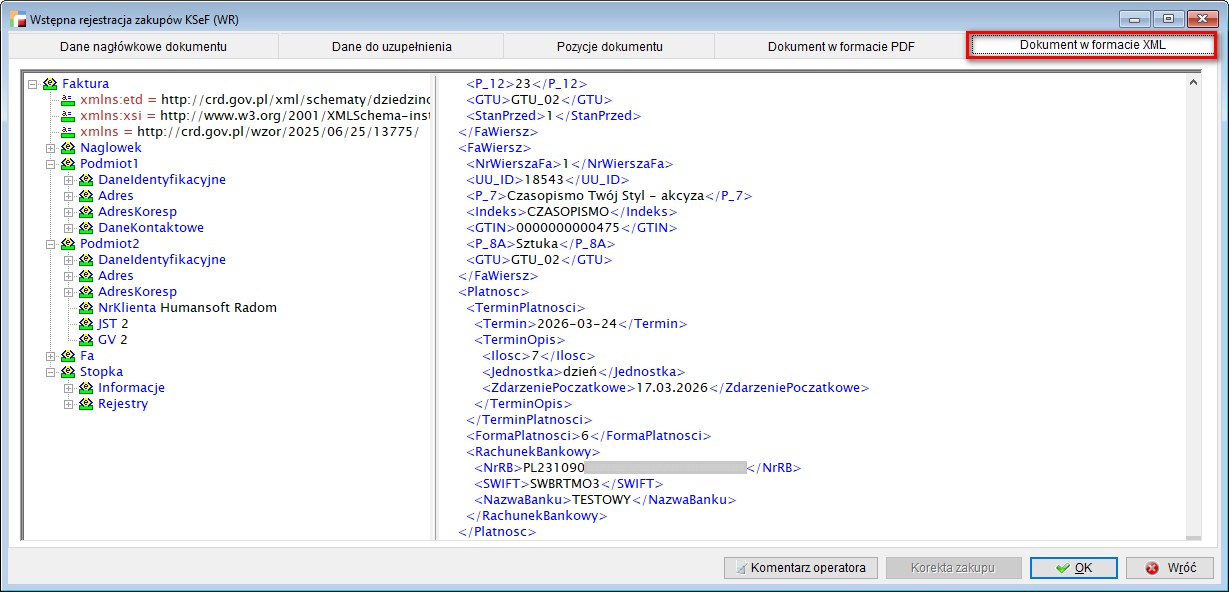 Opcja aktywna jest pod warunkiem posiadania modułu KSeF.