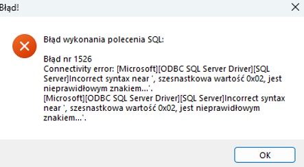 Usunięto komunikat błędu Incorrect syntax near’, szesnastokowawartosc 0x002 jest nieprawidłowym znakiem…, pojawiający się podczas próby wygenerowania XML dla faktury sprzedaży, gdy w uwagach dokumentu znajdowały się niedozwolone znaki 0x02, 0x0002 zakodowane szesnastkowo.