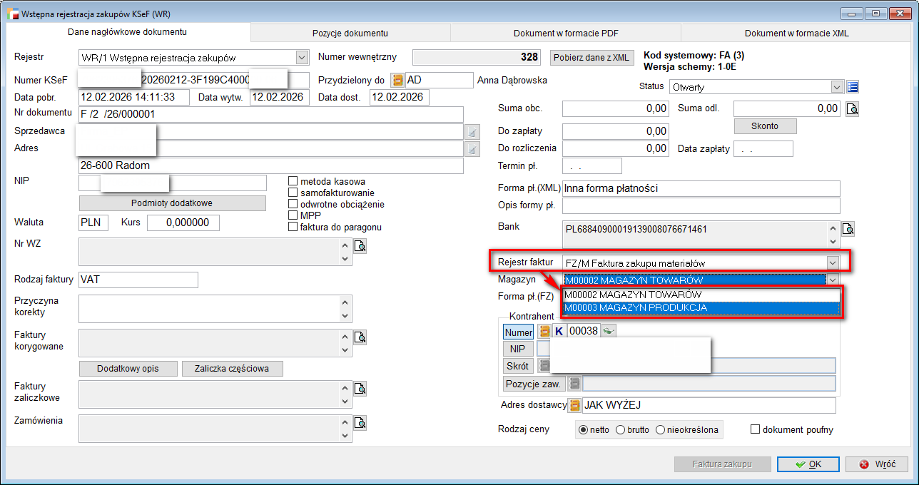 6. 16. Zarządzanie magazynami na dokumencie WR (serwispack 3.89.006)